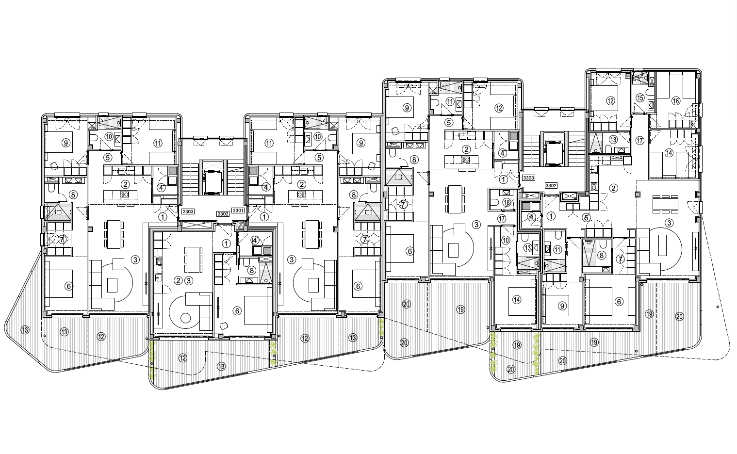 Mouvement et la mer Méditerranée : ce sont les lignes directrices que nous avons suivies pour concevoir cette résidence d’appartements. L’inspiration pour la façade de notre bâtiment provient de l’interaction entre le mouvement des vagues et la brise marine. Ce déplacement continu de l’enveloppe du bâtiment nous permet de définir chacune des terrasses et des espaces extérieurs, créant une harmonie entre l’architecture et l’environnement naturel.